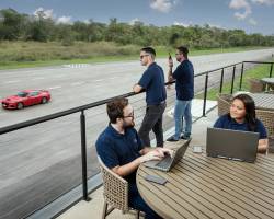 O outro é o Centro de Diagnóstico Avançado de Engenharia, uma estrutura totalmente nova e conectada, construída junto à pista de testes. Com dois andares e um total de 350 metros quadrados, ele permite aos engenheiros processar, analisar e compartilhar em tempo real os dados coletados na pista com outros centros da Ford no mundo para implementar ajustes de hardware e software de modo mais rápido e eficiente.
