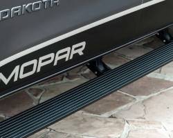 Para quem busca conforto e um visual diferenciado, a Mopar oferece diversas opções de estribos, desde os fixos tubulares ou em plataforma até os sofisticados modelos elétricos, que se recolhem quando as portas são fechadas. Rodas com design exclusivo, para-barros personalizados e soleiras de porta também fazem parte do catálogo, agregando personalidade e proteção à picape.
