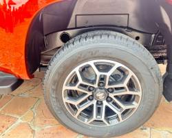 Com essa nova identidade visual, a RAM Dakota Laramie chega com faróis e barra de led que geram uma animação luminosa especial quando o carro é trancado ou destrancado. Outro destaque são os elementos cromados, presentes na carroceria e nas rodas diamantadas de 18" com pneus 265/60. A cor externa Terra Sunrise, claro, também chama atenção.