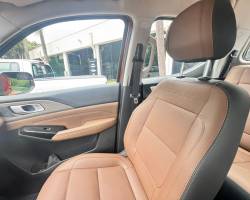 No interior, os bancos têm o revestimento de couro premium no tom marrom, material que também reveste os painéis de porta e de instrumentos com materiais macios ao toque. O console central é duplo, com a parte superior abrigando dois porta-copos, diversos comandos e um apoia-braço. Na inferior, encontram-se outro porta-objetos e duas portas USB, sendo uma do tipo C, além de uma tomada de 12V.