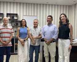 O secretário municipal de Infraestrutura e Obras Públicas, Reginaldo Teixeira, recebeu o secretário de Planejamento e Desenvolvimento Urbano, José Afonso Portocarrero, e as secretárias municipais de Ordem Pública, Juliana Palhares, e de Meio Ambiente e Desenvolvimento Urbano, Lise Bokorni, para uma reunião com representantes da concessionária de energia Energisa.