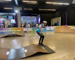 Apresentação de patins olímpico durante a COE Expo25. Foto: Caroline Rodrigues/MT Par