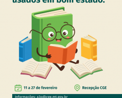 A Controladoria Geral do Estado de Mato Grosso (CGE-MT) deu início, nesta quarta-feira (11.2), às ações da Comissão da Agenda Ambiental da Administração Pública (A3P) de 2026 com o lançamento da Campanha de Arrecadação de Livros e Materiais Escolares. A iniciativa busca mobilizar servidores e a população para a doação de itens novos ou usados, em bom estado de conservação, que serão destinados à Biblioteca Comunitária Saber com Sabor e a instituições sem fins lucrativos. A campanha segue até o dia 27 de fevereiro.