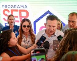 Ainda no município, o governador Mauro Mendes e a primeira-dama Virginia Mendes realizaram o lançamento da pedra fundamental para a construção de mais 2 mil casas pelo programa.