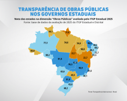 O Governo de Mato Grosso alcançou o 3º lugar em transparência de obras públicas em levantamento divulgado na terça-feira (14.3) pela organização não-governamental “Transparência Internacional”. O Estado obteve nota 81,8, classificação considerada “Ótima”, e superou a média nacional de 63,6 pontos.