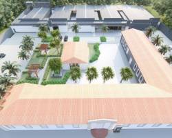 Já a outra parte da edificação, com uma área construída de 2.208,28 m², que será reformada e ampliada, é um prédio de alvenaria convencional, que fica em uma área nos fundos do complexo.