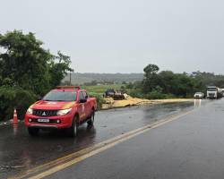 O Corpo de Bombeiros Militar de Mato Grosso (CBMMT) atendeu, na tarde desta quarta-feira (28.1), um grave acidente de trânsito envolvendo um caminhão e dois veículos de passeio, na rodovia BR-364, no km 278, no município de Jaciara (a 147 km de Cuiabá).
