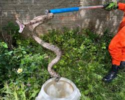 Bombeiros militares resgatam jiboia que estava em lote de residência