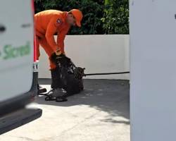 Bombeiros resgatam jaguatirica em pátio de agência bancária