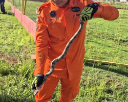 Já em Lucas do Rio Verde, a equipe da 13ª Companhia Independente Bombeiro Militar (13ª CIBM) foi acionada nesta sexta-feira (6) para resgatar uma jiboia cinza encontrada às margens da rodovia MT-449.