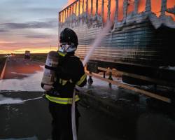Ao chegar, os bombeiros providenciaram a segurança da cena, com a interdição da via. A sinalização foi feita com o posicionamento do caminhão de combate de um lado da rodovia e a utilização de cones do outro, uma vez que a carreta encontrava-se em chamas sobre a pista, impossibilitando o trânsito de outros veículos durante a operação.