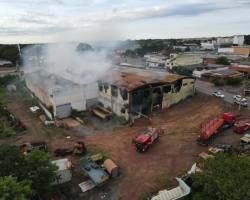 Corpo de Bombeiros combate incêndio em depósito abandonado em Várzea Grande