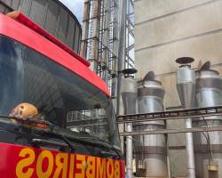Corpo de Bombeiros combate incêndio em silo de armazenamento de grãos