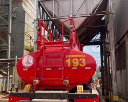 Após a avaliação inicial do cenário, foi determinada a montagem de linha de combate, com atuação pelo topo do secador, visando conter a propagação das chamas e garantir a segurança da estrutura.