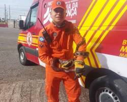 Corpo de Bombeiros resgata filhotes de papagaio presos em fios e serpente ferida em estação de tratamento
