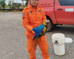 Corpo de Bombeiros resgata gambá e arara-canindé em diferentes municípios