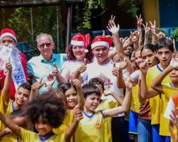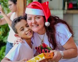 Visivelmente emocionada, Sônia Botelho, idealizadora do Natal com Propósito, relembrou como nasceu sua relação com a instituição. “Eu vim aqui pela primeira vez só para conhecer, não tinha nenhuma ação programada. E quando entrei na sala, as crianças me receberam com aquele ‘bom dia, tia’, com uma educação que me encantou. Em cada sala era igual: carinho, respeito, amor. Fiquei apaixonada. Não tem como vir aqui e não se apaixonar por essas crianças. Enquanto eu tiver saúde, quero continuar fazendo isso. É apaixonante. A gente vê a alegria delas e sai leve, nossos problemas nem parecem problemas.”
