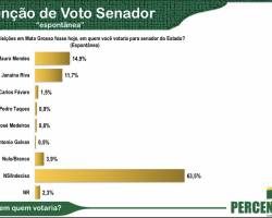 Na modalidade espontânea, em que o eleitor responde sem acesso prévio aos nomes, Mauro Mendes tem 14,9% e Janaina Riva aparece com 11,7%, configurando empate técnico dentro da margem de erro.