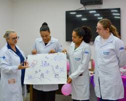 O evento teve como palestrantes as professoras, Alice Nespolo e Priscilla Modes, e a mestranda, Daniele Medeiros. A equipe do projeto realizou dinâmicas e uma roda de conversa sobre experiências de vida.